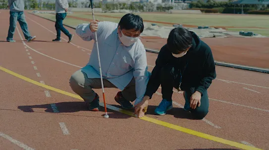 パラスポーツ、そしてスポーツ全般への注目が高まった2021年、このプロジェクトを私たちは日本でも発表しました。視覚障がい者のための情報技術アドバイザーであり全盲のランナーでもある御園政光さんを最初のパートナーとして、さらにより多くの視覚障がいのある方たちに体験していただき、この技術をさらに向上させていく取り組みを始めています。
